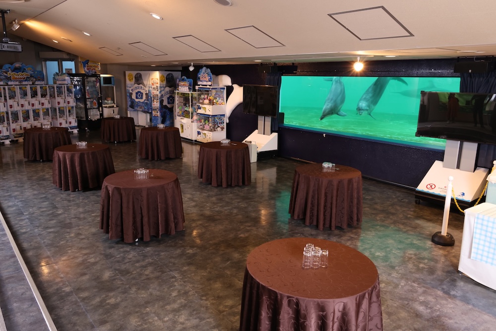 夜のしながわ水族館を、パーソナルからビジネスまで、さまざまなパーティーやイベントにご利用いただける貸切プラン。イルカたちが悠々と泳ぐ、水族館ならではの心癒される雰囲気のなか、充実のひと時をお過ごしいただけます。